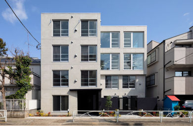 notice目黒本町は、東急目黒線西小山駅より徒歩8分、都心へのアクセスが良い、落ち着いた住宅街に建つデザイナーズマンションです。 外観は、コンクリート打放し素地仕上に大きなガラス窓、メゾネットの階段がアクセントとなって、幾何学的でスマートな設えとなっています。内部は白い壁とコンクリート打放しで仕上げた、ワンルームとメゾネット1LDKのタイプとなっています。