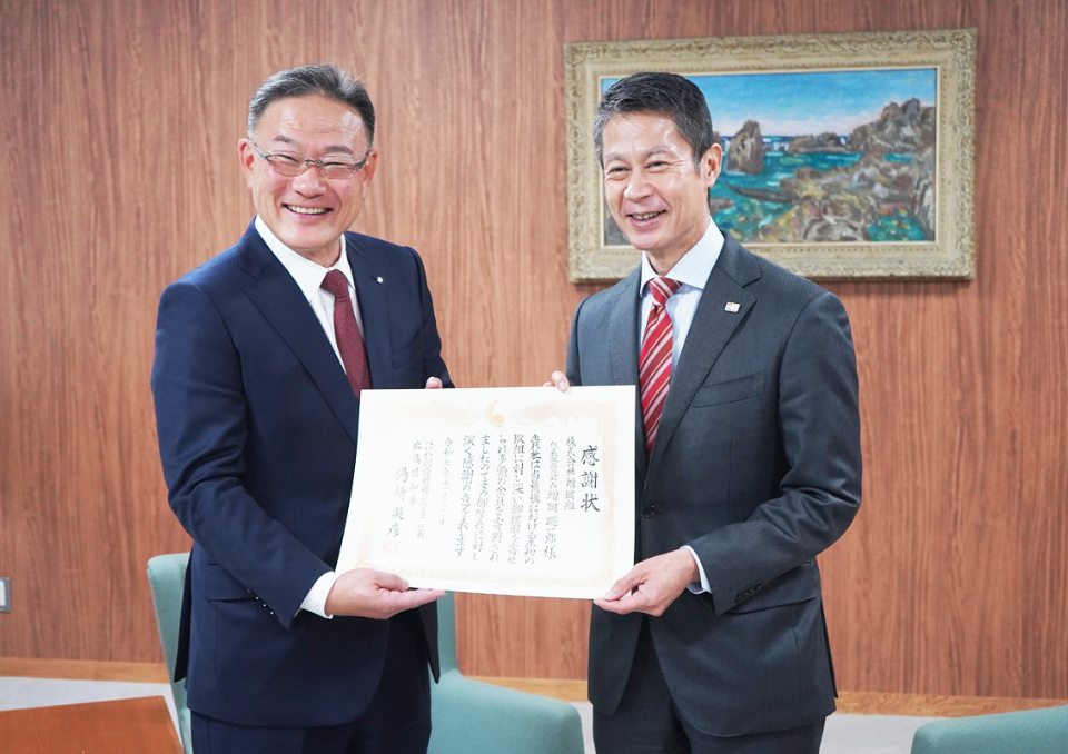 2025年11月21日(金)に広島県庁にて寄附金贈呈式が行われ、湯﨑知事より感謝状を受け取りました。