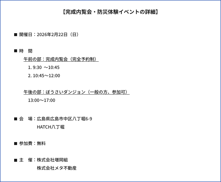 HATCH八丁堀 完成内覧会・防災体験イベントを開催いたします