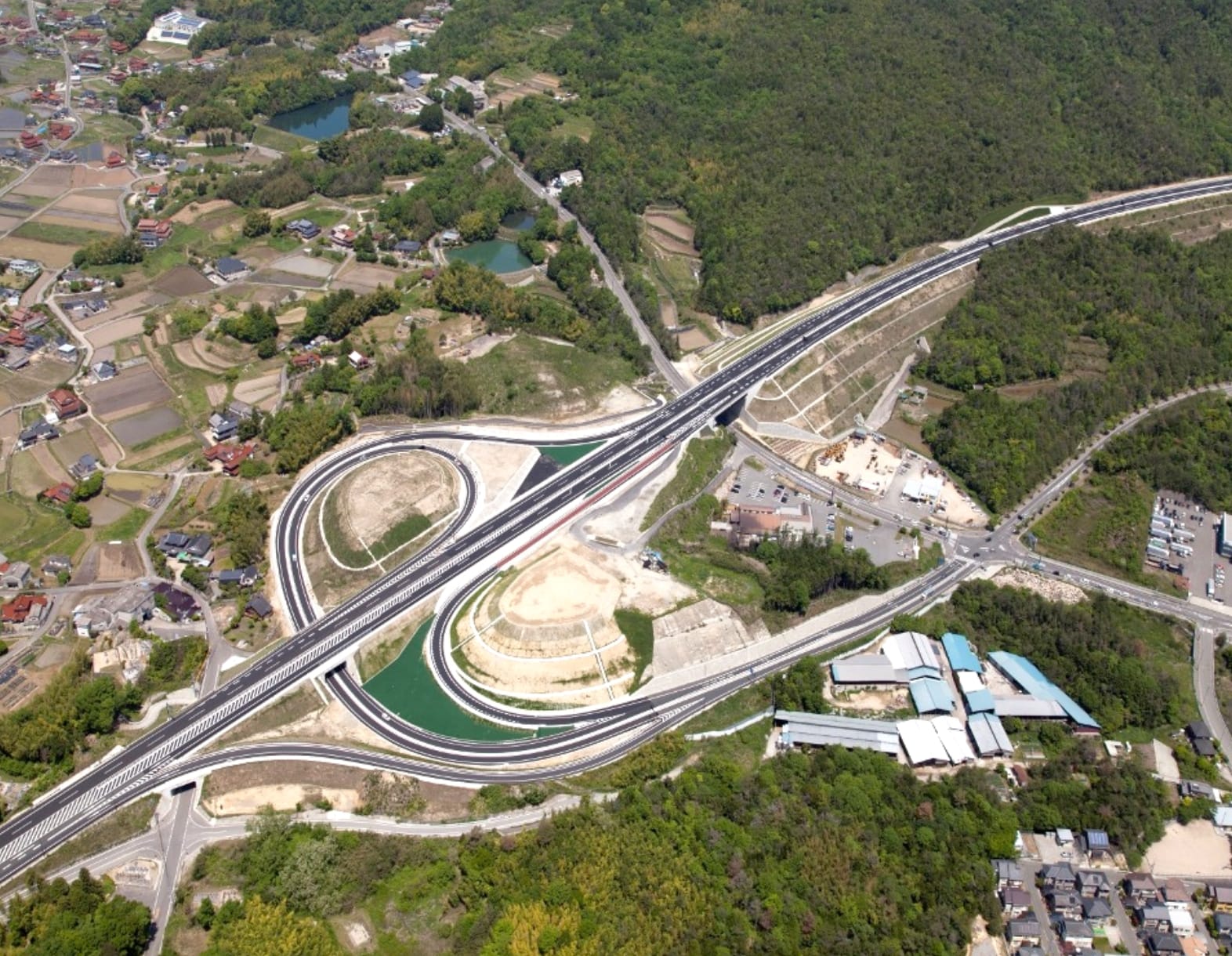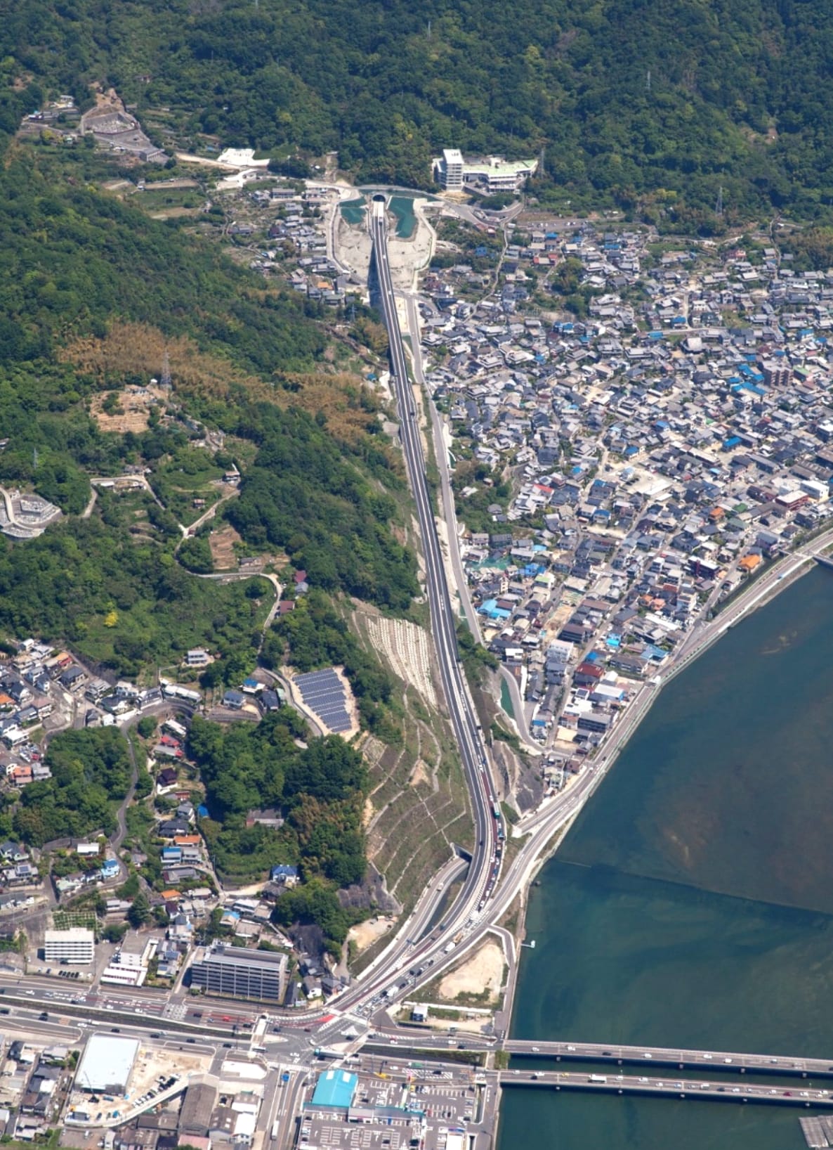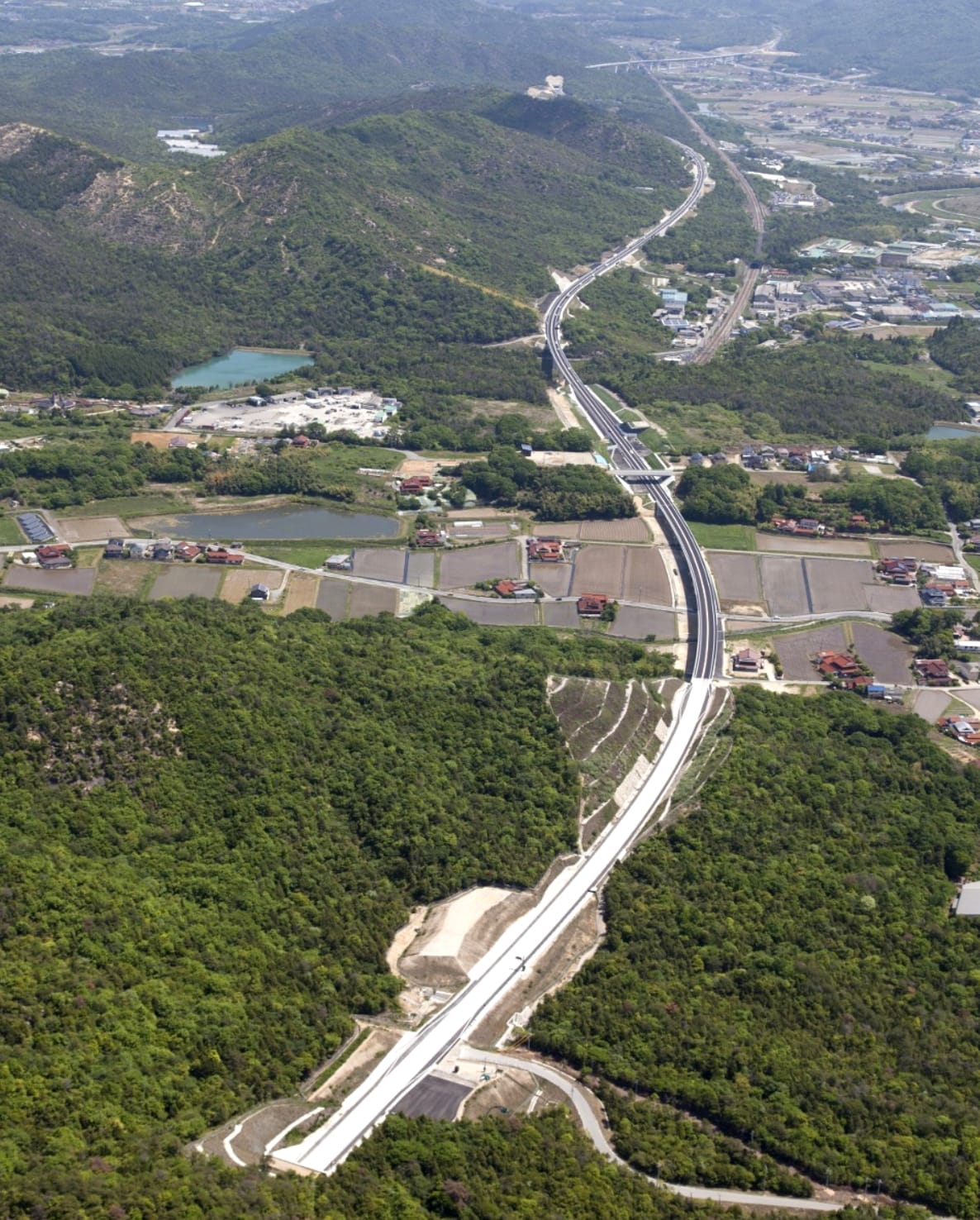 その東広島・呉自動車道が、平成27年3月15日に延長32.8kmが全線開通、また、令和4年3月19日に阿賀立体化が完成しました。弊社はそのうち、道路改良19工事、橋梁下部5工事、床版工事、トンネル配管工事、電気室新築工事の27工事を担当いたしました。