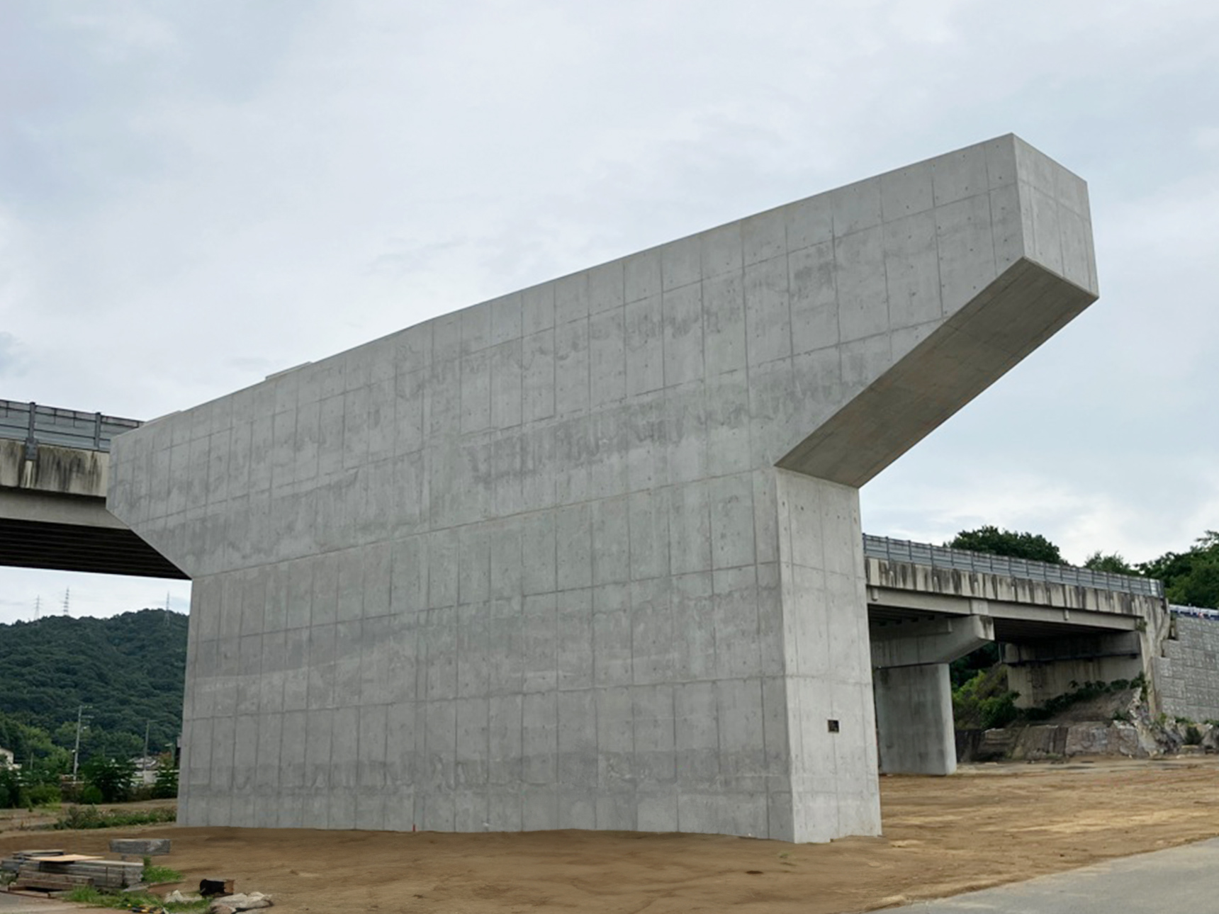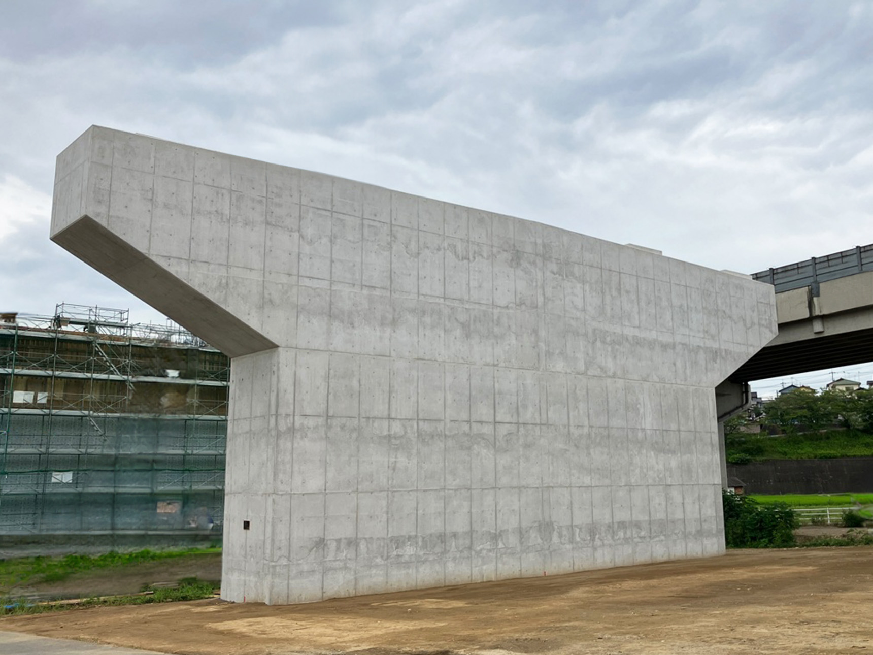 - 工事延長 L=100m、P17橋脚 橋脚躯体工(H=13.5m W=26.4m t=2.5m) 、RP5橋脚 橋脚躯体工(H=15.6m W=6.5m t=3.0m)